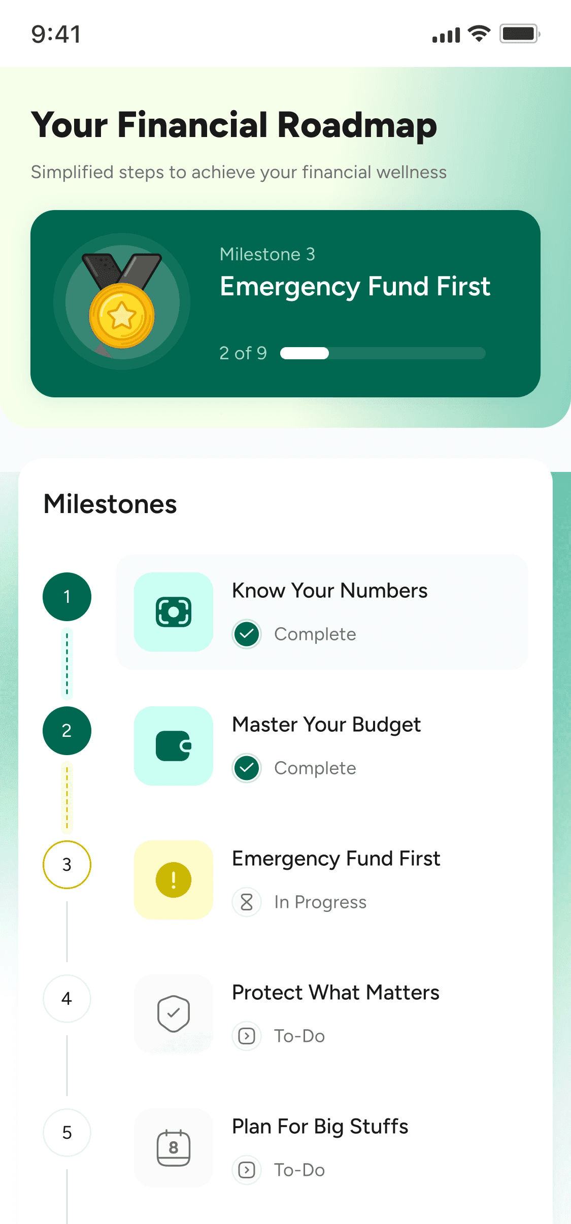 Finspire is redefining how people save for retirement, combining Shariah-compliant micro-retirement solution with our AI-driven financial literacy platform, creating an end-to-end ecosystem for financial wellbeing. We help users navigate their financial journey, step by step, from awareness to retirement, all in one app.